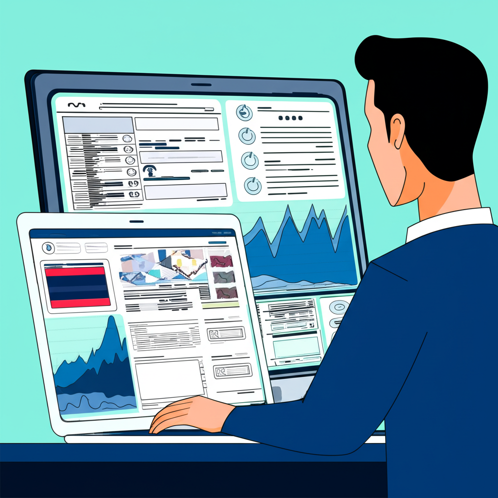 Thai trader looking at multiple forex broker options on a screen with charts highlighting trust and security illustration style