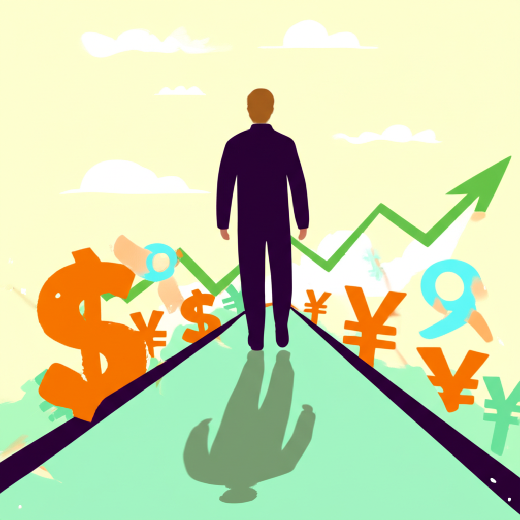 ภาพประกอบบุคคลก้าวเข้าสู่เส้นทางการเติบโตทางการเงินด้วยสัญลักษณ์สกุลเงิน กราฟ และการเทรดฟอเร็กซ์ในประเทศไทย
